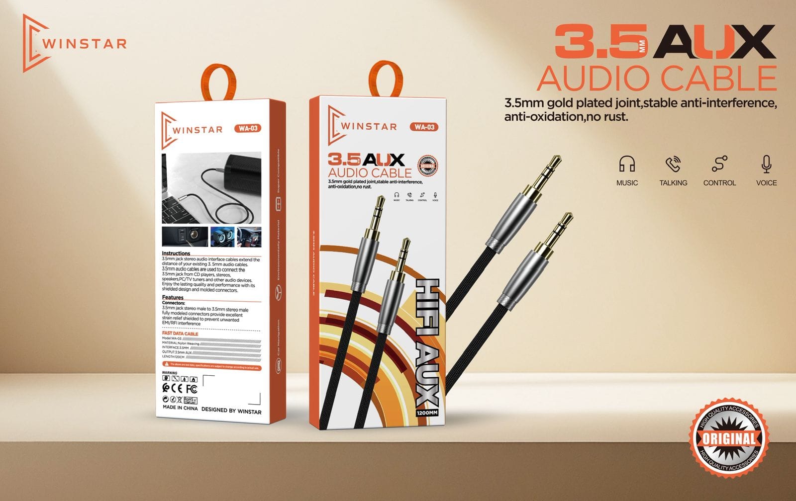 Le Winstar WA-03 est un câble audio AUX 3.5mm de haute qualité, conçu pour offrir une transmission sonore stable et sans interférences. Grâce à ses connecteurs plaqués or, il garantit une excellente conductivité et une résistance à l’oxydation, assurant une longue durée de vie même en usage intensif.