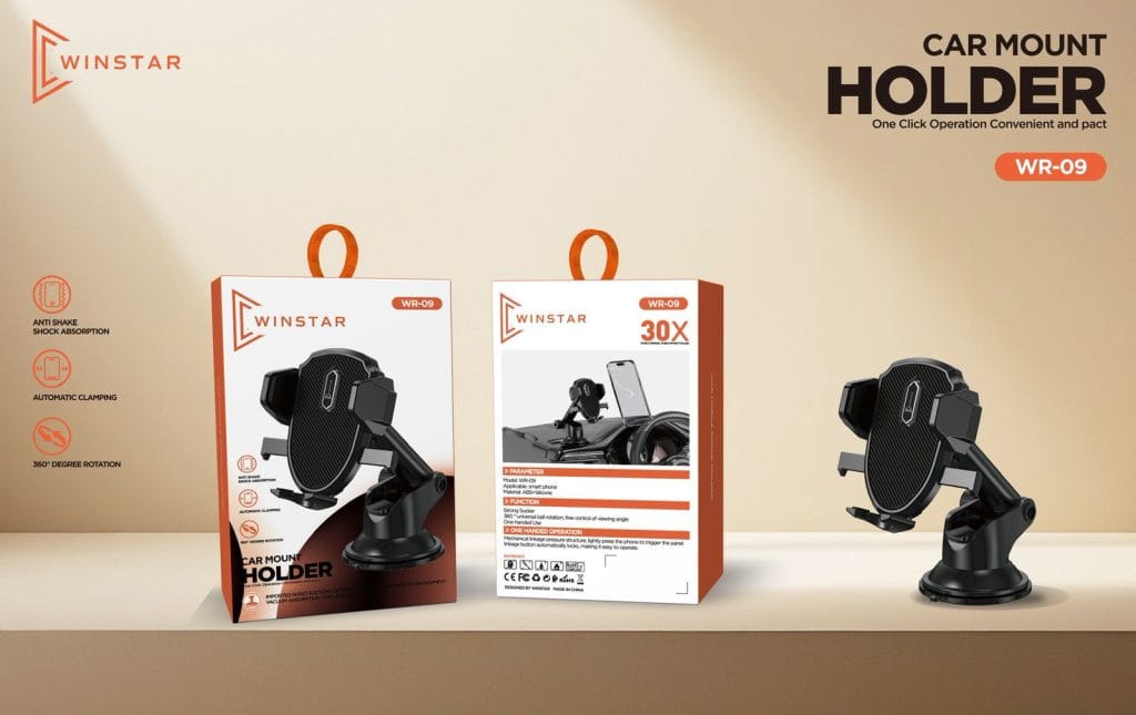 Le WINSTAR WR-09 est un support de téléphone pour voiture conçu pour offrir une fixation stable, sécurisée et pratique sur la grille d’aération. Grâce à son système antichoc et sa rotation à 360°, il garantit une utilisation confortable et sûre pendant la conduite.